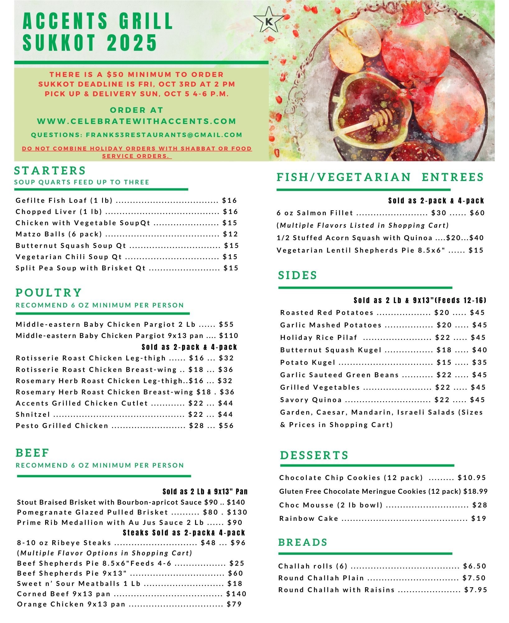 Shabbat Order Pick-up at Accents Liquor next door Safeway Supermarket on Fridays between 10-Noon p.m.