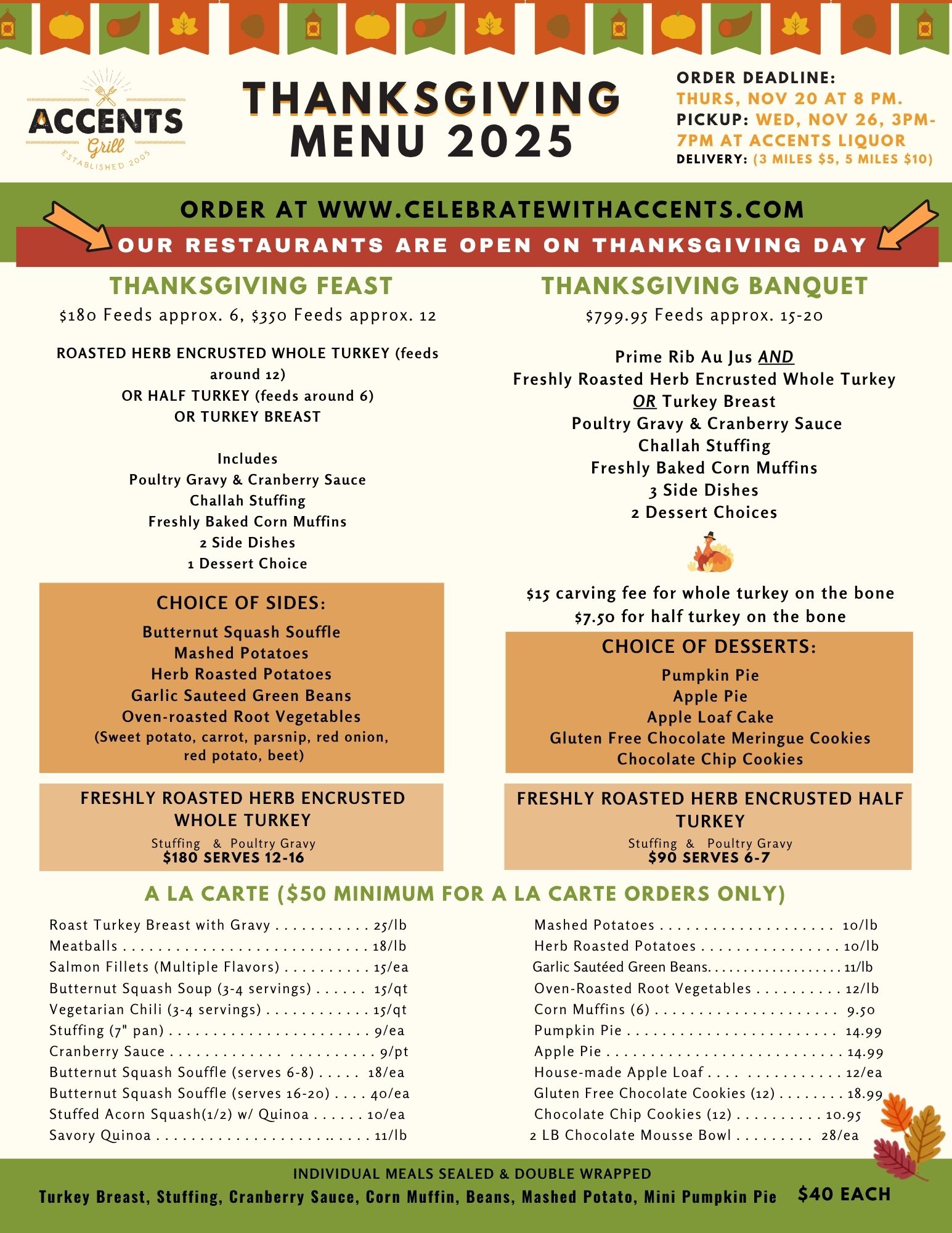 THANKSGIVING ORDER DEADLINE 11.20.25. ORDERS MAY NOT BE COMBINED WITH SHABBAT OR FOOD SERVICE ITEMS.
